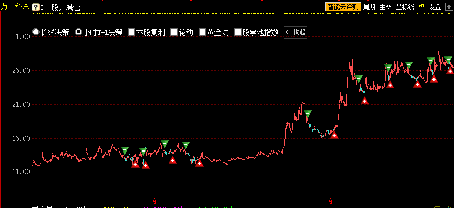 选择长线决策,在个股日K线走势图上可见长线决策的开减仓信号。