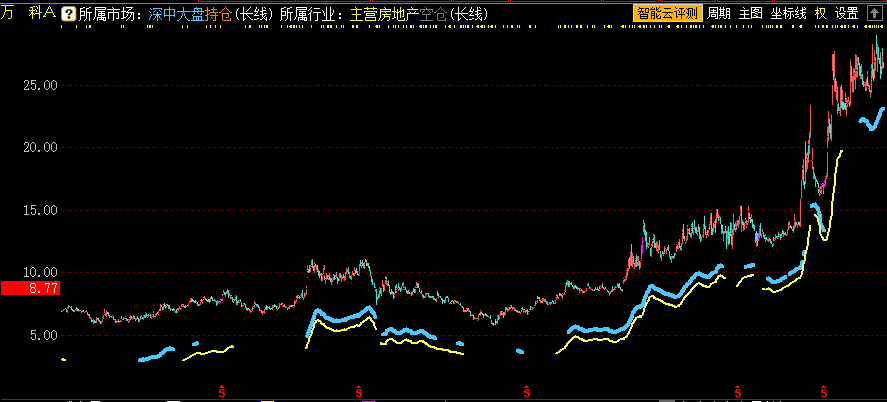2. 本指标显示的是个股所属市场和行业的动态全赢开减仓,蓝色线代表所属市场开仓,黄色线代表所属行业开仓,未画线区域分别代表所属市场、行业为空仓。