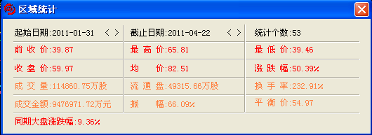 如上图所示,按照多空指标的提示进行操作,从2011年1月31日持有该股票,2011年4月22日卖出该股票,获得50.39%的收益率,远超大盘的9.36%的收益率。